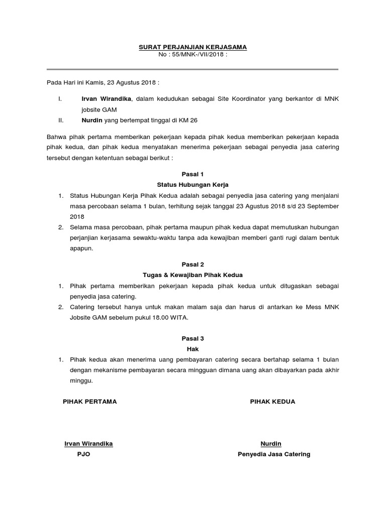 Surat Perjanjian Kerjasama Catering Pdf